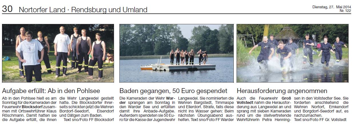 2014 wurden wir zur Cold-Water-Challenge aufgerufen. Die Nixen der Feuerwehr lassen sich nicht zweimal bitten